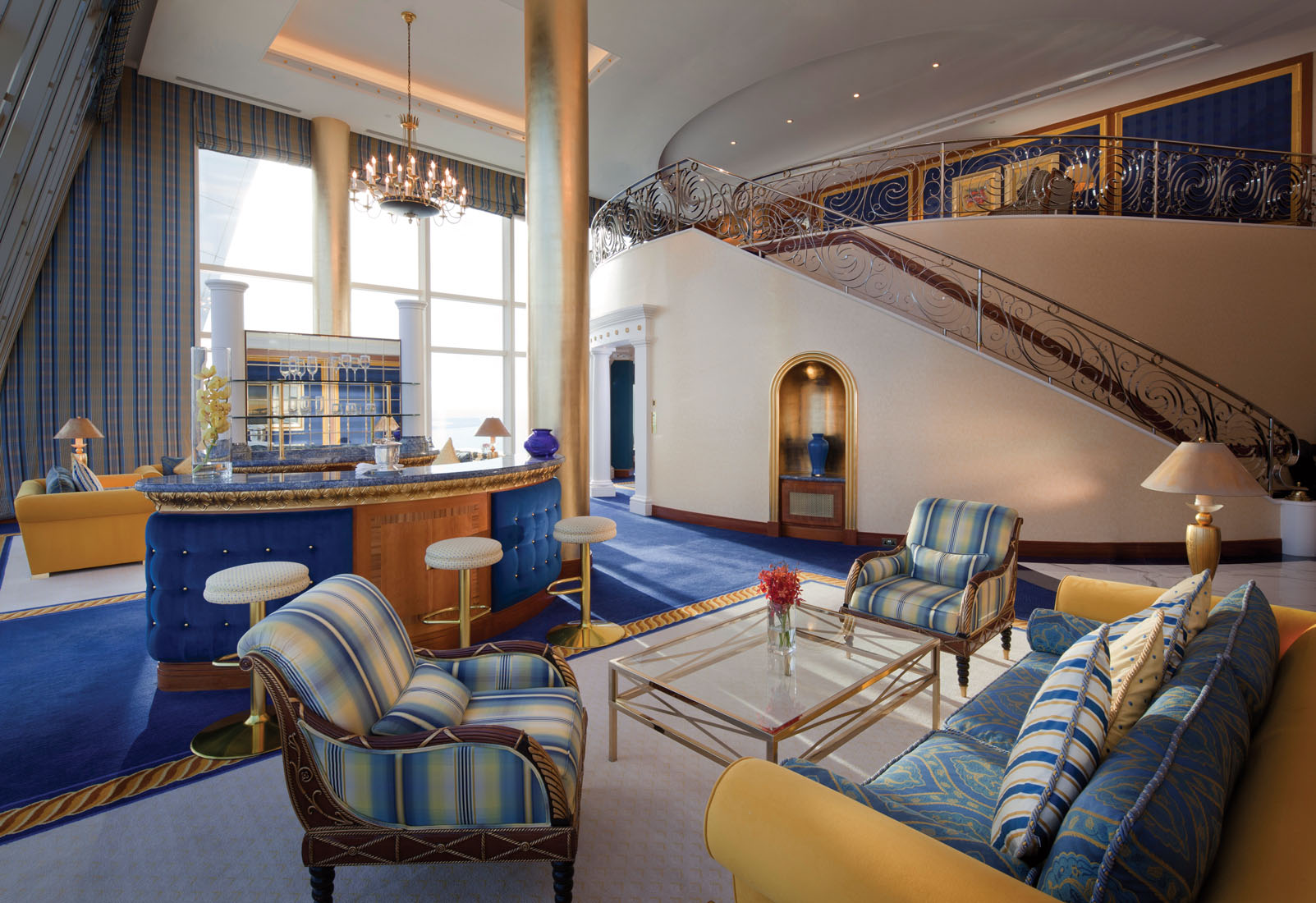Nádherné ubytování s jedinečným výhledem na Arabský záliv nebo panorama Dubaje a oddělenou ložnicí a obývacím pokojem. O pohodlí hostů se stará 24 hodin denně komorník. Ve vybavení apartmánu zařízeného v arabském stylu hosté naleznou klimatizaci, postel velikosti King, Wi-Fi, iMac, dvě televize, polštářové menu, prostornou koupelnu s Jacuzzi a kosmetickými prostředky značky Hermes.